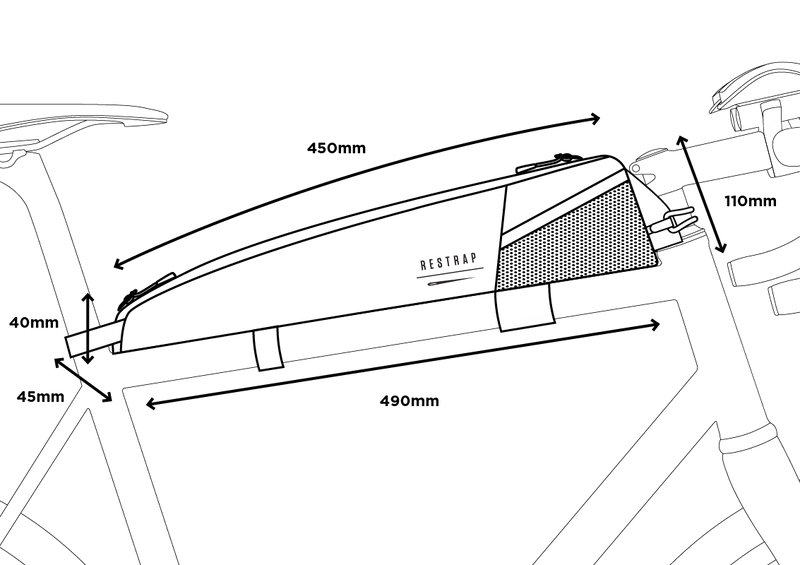 Built to be practical and functional, the bag is held firmly in place with a rubberised velcro strap and an adjustable MOLLE hypalon fitting, which allows the bag to function seamlessly with all Restrap Frame Bags. A rigid internal plastic structure keeps the bag upright and stable and the universal headset fitting accommodates all headsets, including bikes with a low stack height. A stretch mesh side pocket provides storage for nutrition, wrappers and other on-the-fly essentials.