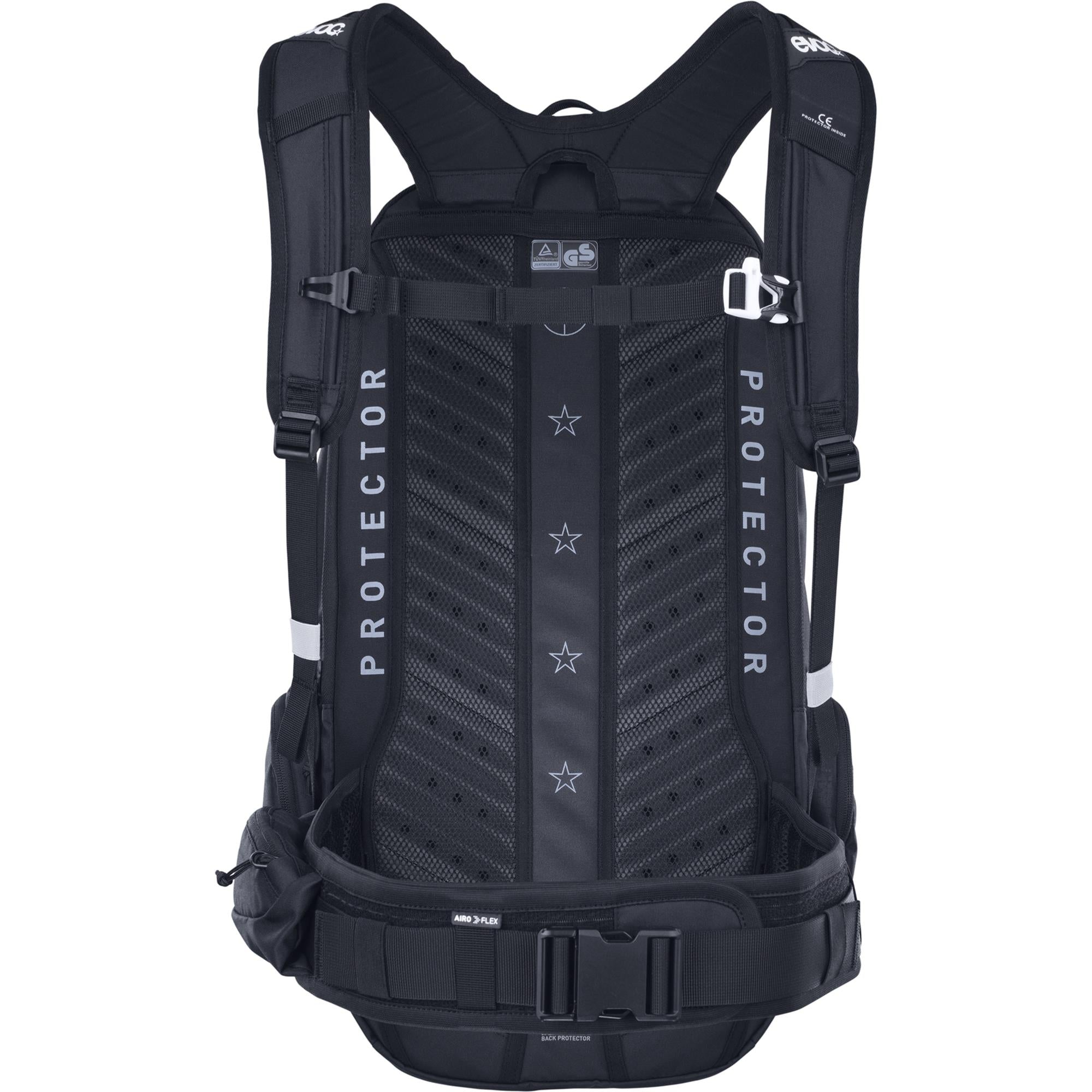 Features included: Air circulation, Airo Flex, charger strap fixation system, helmet carry, hydration system compartment, Liteshield Plus back protector, mobile phone pocket, padded battery compartment, rain cover, signal whistle, sunglasses pocket, tool compartment, key holder