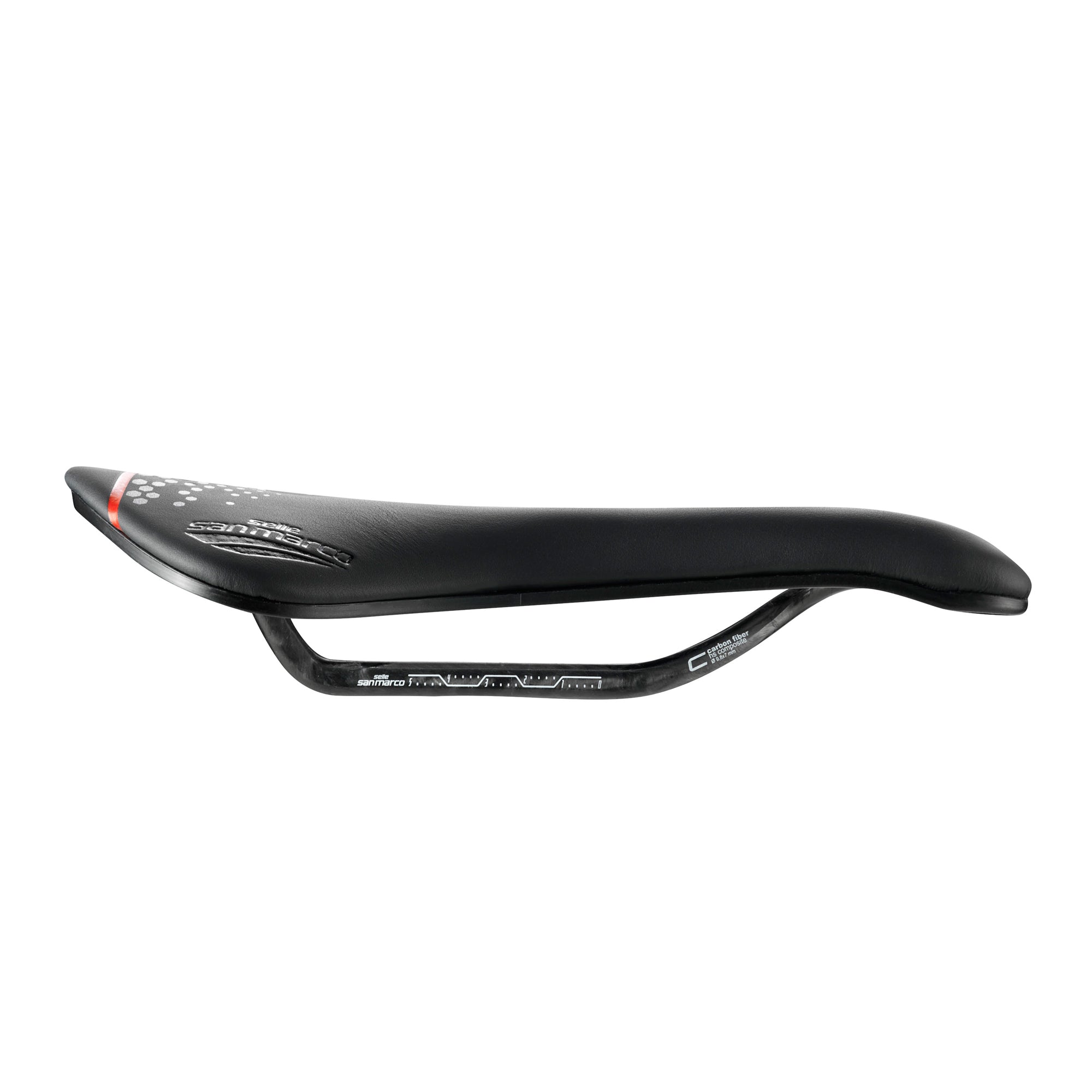 The crossing X shape knot (Dynamic Node Action) enables to increase the rigidity of the rail and also to reduce the weight, avoiding useless spin and torsion, without compromising the comfort. A length greater than the traditional carbon rails you can find on the market, allows one of the best adjustments of the saddle. Superleggera and Carbon FX saddles have this rail.