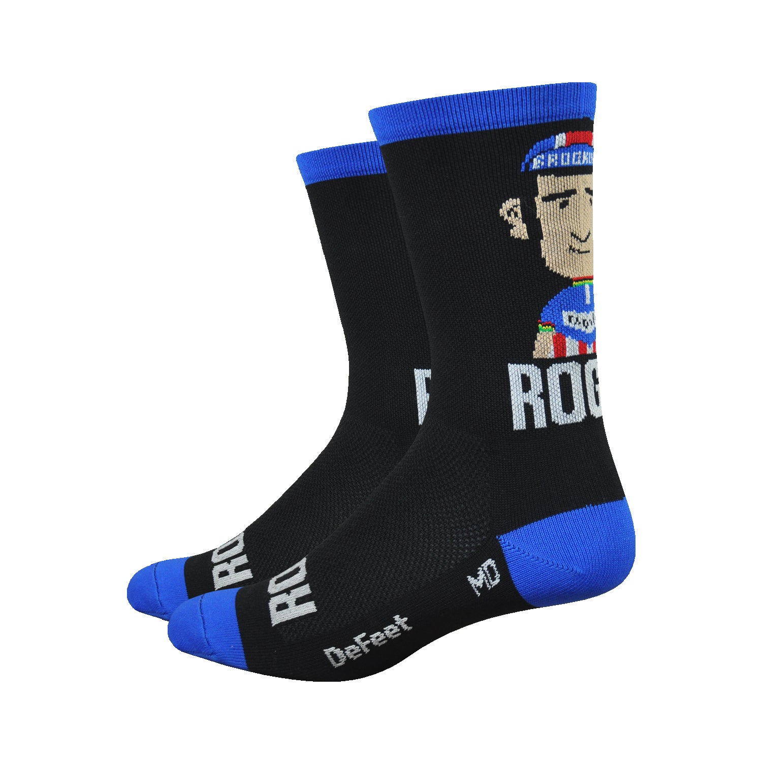 Part of the Rich Mitch Legends collaboration, these fabulous 6" Aireator DeFeet socks feature an exclusive design with Britain's Tom Simpson wearing a world champion jersey with the Peugeot lettering above the rainbow bands on the cuff.