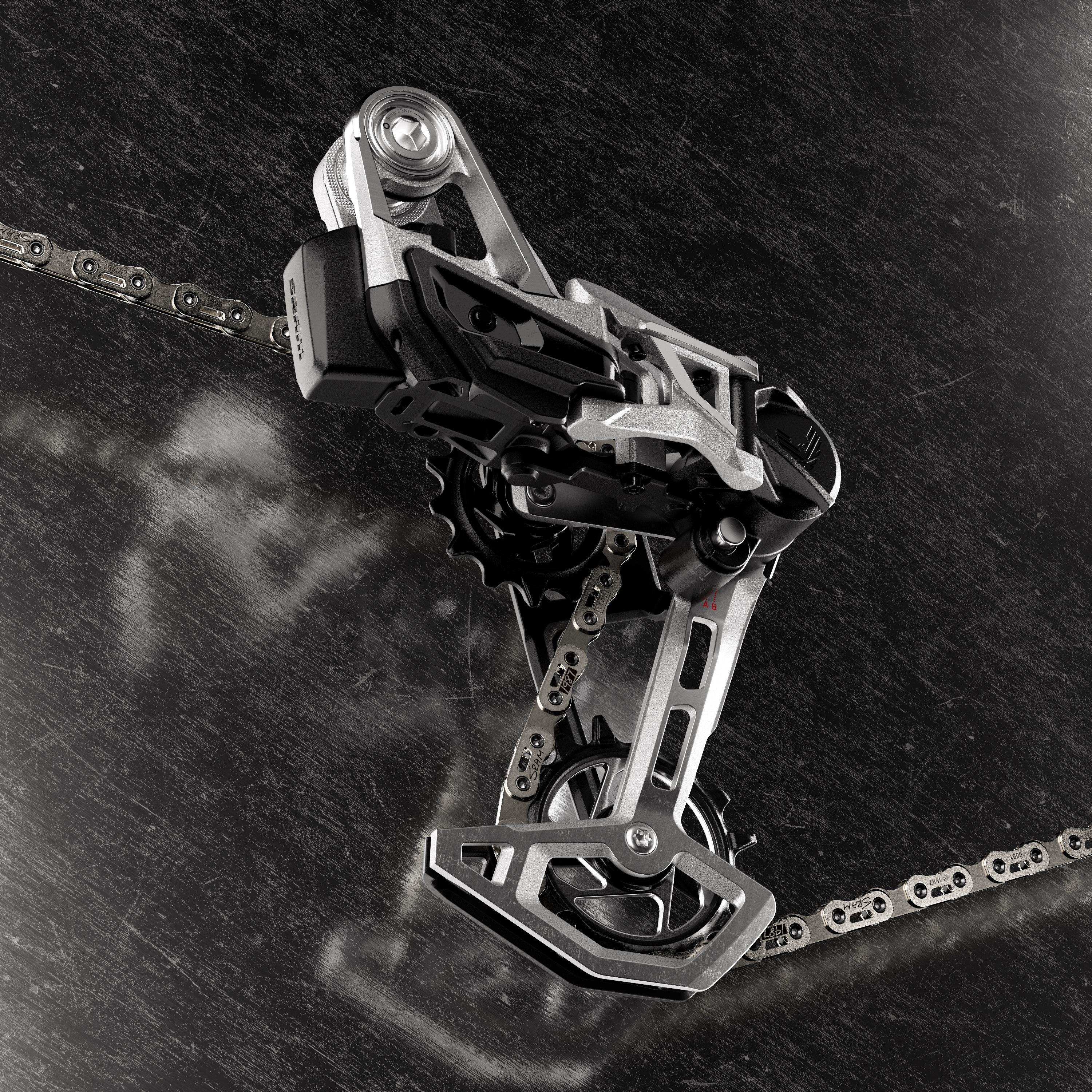 • Aluminum Inline Cage assembly paired with lightest weight AXS Full Mount Transmission derailleur body